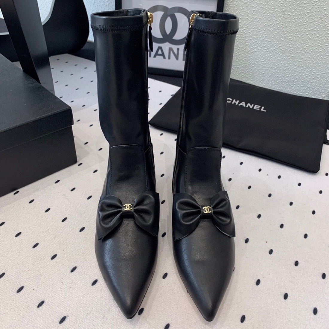 CC 25 Bowknot Stretch Boots Black Sheepskin 516420