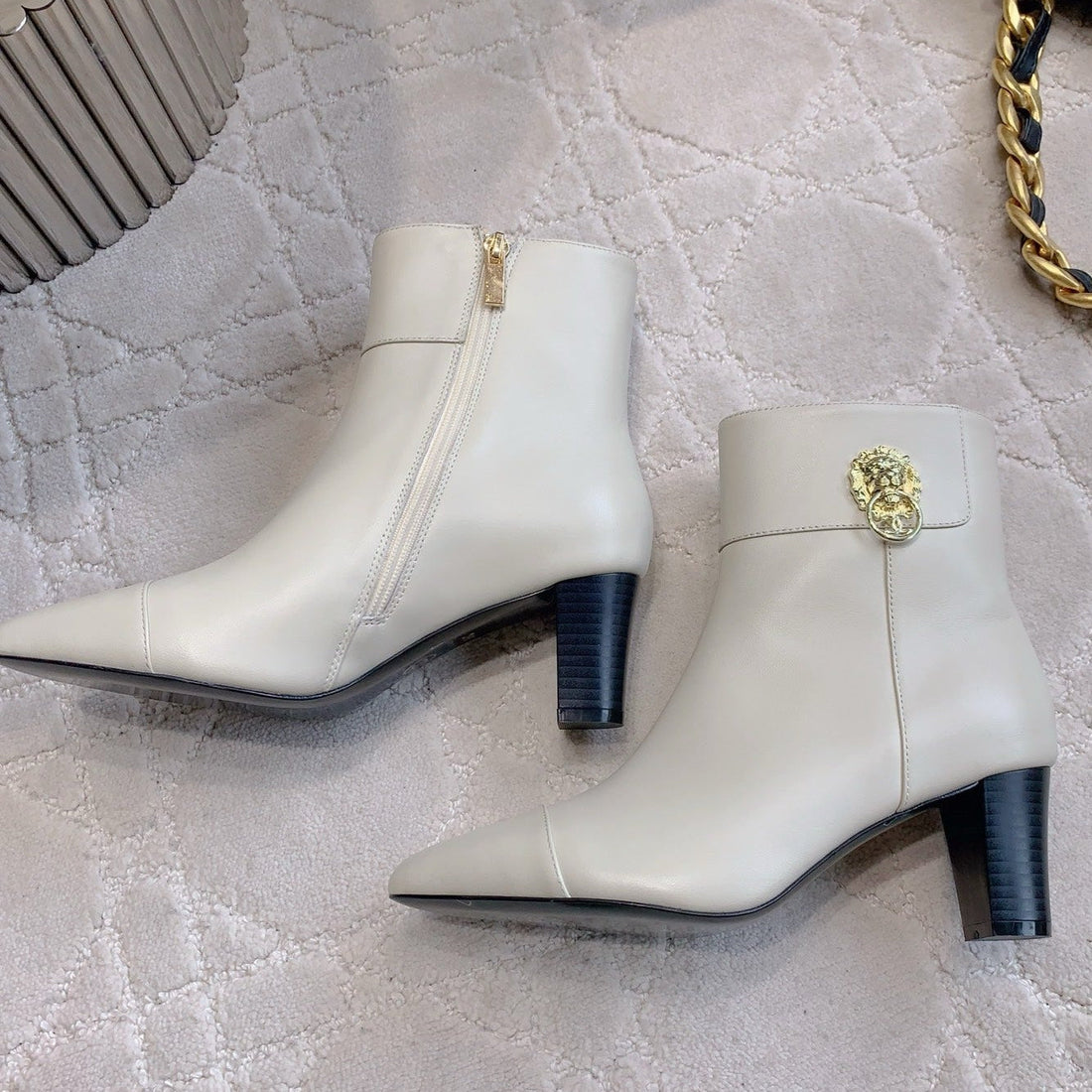 CC 25 Pearl Heel Boot Beige Calfskin 516655