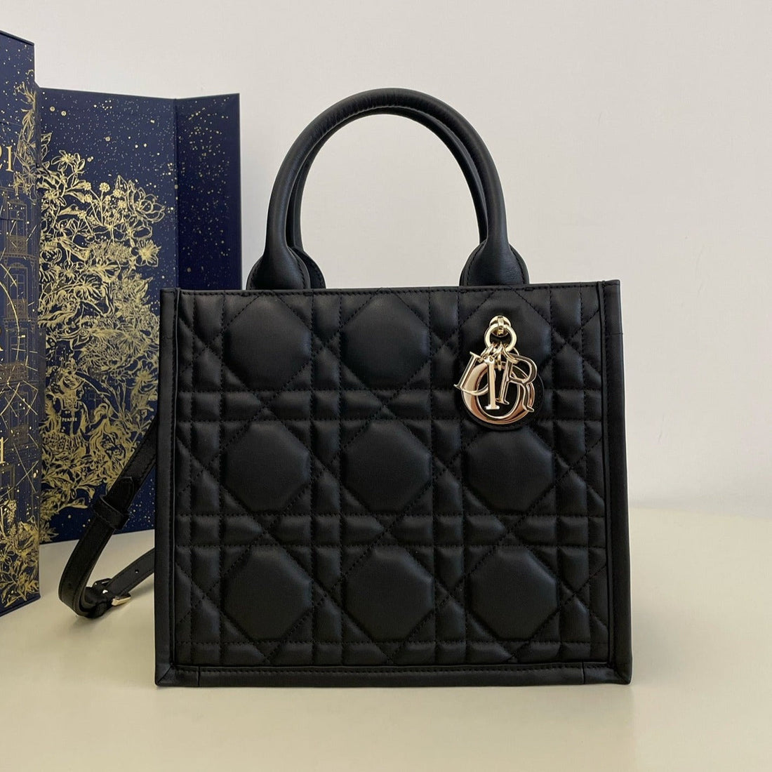 cd large book tote 42cm oblique embroidery calfskin
