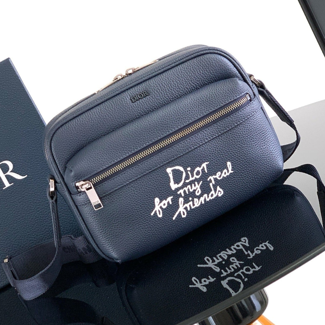 Dior Rider 2.0 Zippered Messenger Bag Navy Blue Cowhide 336245