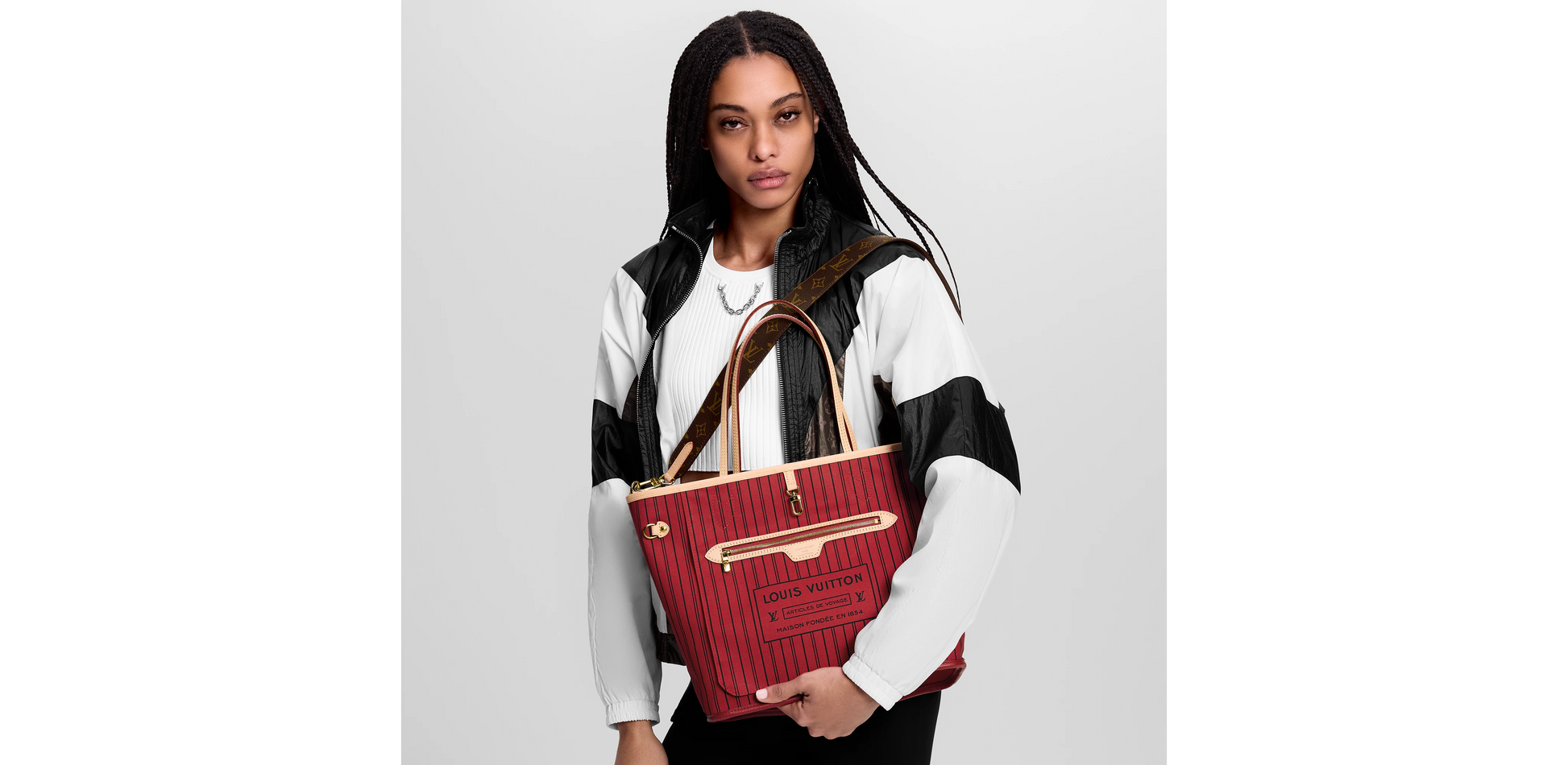 Die ikonische Neverfull Bandoulière Inside Out MM Tasche ist in einem neuen Wendemuster erhältlich und eine zeitlose Wahl. Diese Edition ist aus Monogram Canvas gefertigt und verfügt über ein farbenfrohes Textil mit Streifenmuster. Sie hat auch einen abnehmbaren Riemen, der das Tragen über der Schulter ermöglicht. Mit den seitlichen Haken lässt sie sich in eine Hobo-Silhouette verwandeln.