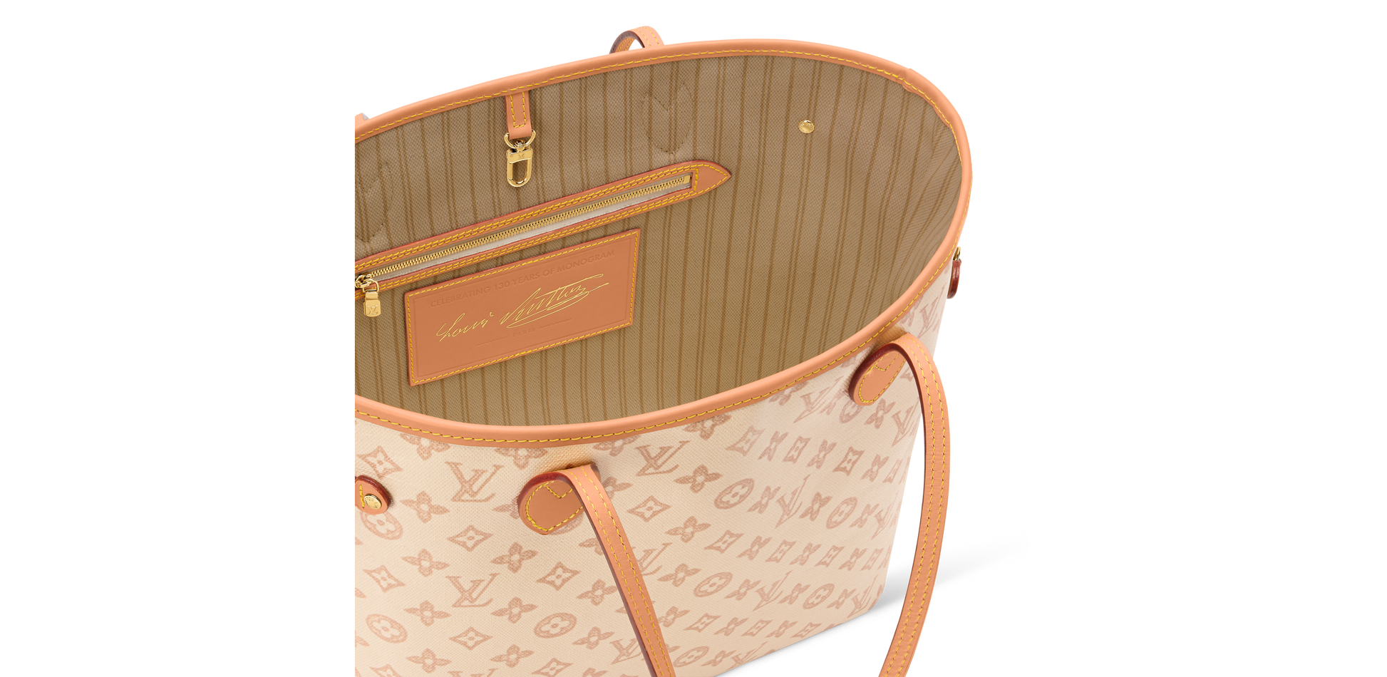 Als echtes Sammlerstück würdigt diese Neverfull MM das Erbe von Louis Vuitton und das ikonische, 130 Jahre alte Monogramm. Inspiriert von einem archivierten Kundenregisterbuch wird diese neu interpretierte Version des charakteristischen Musters in einer zeitlosen Farbgebung auf Canvas angeboten. Die geräumige Tasche bietet Platz für alltägliche Essentials, einschließlich eines Laptops, und ist mit einer gestreiften Reißverschlusstasche ausgestattet, um kleinere Gegenstände sicher aufzubewahren.