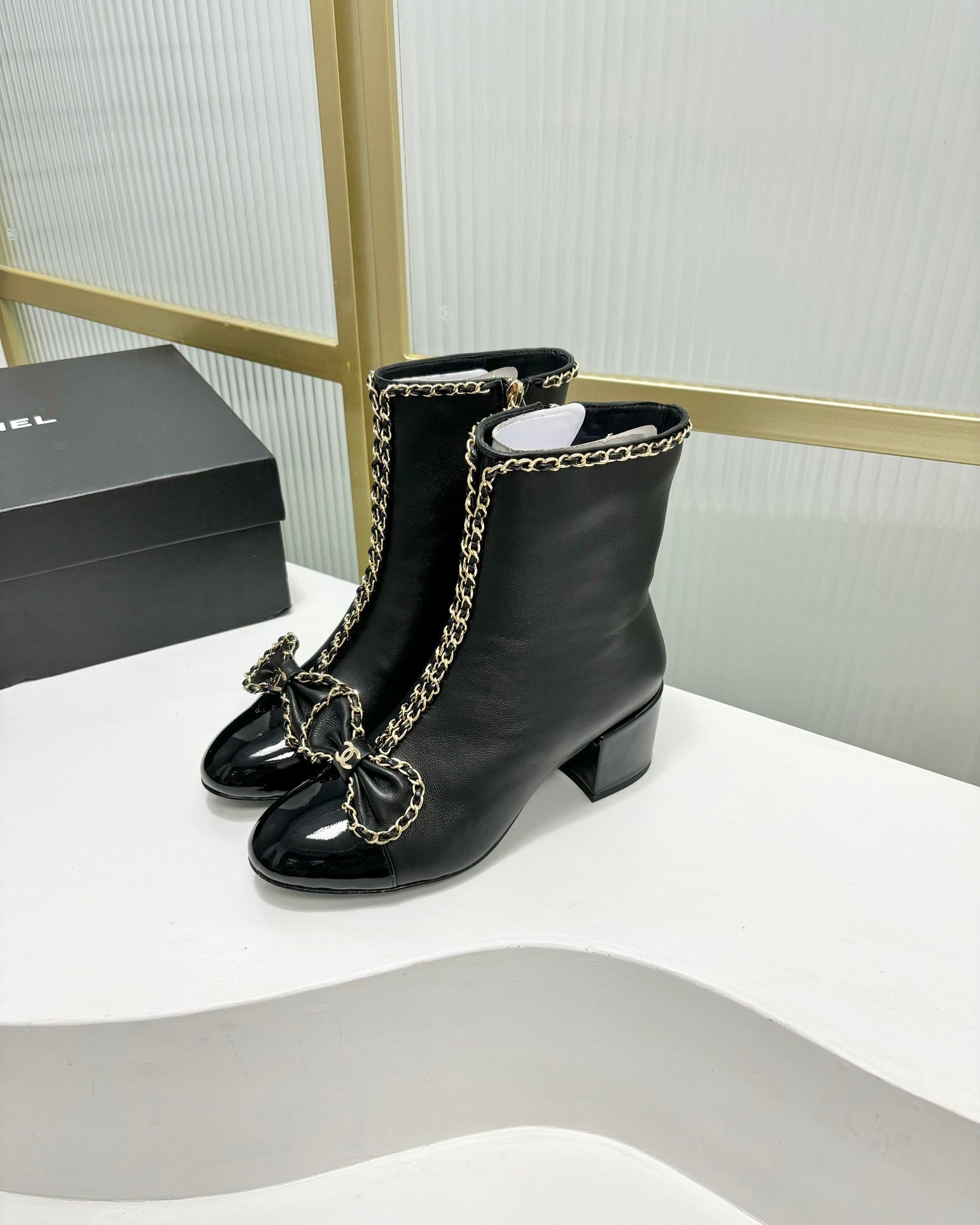 - Material: Patent Calfskin, Calfskin