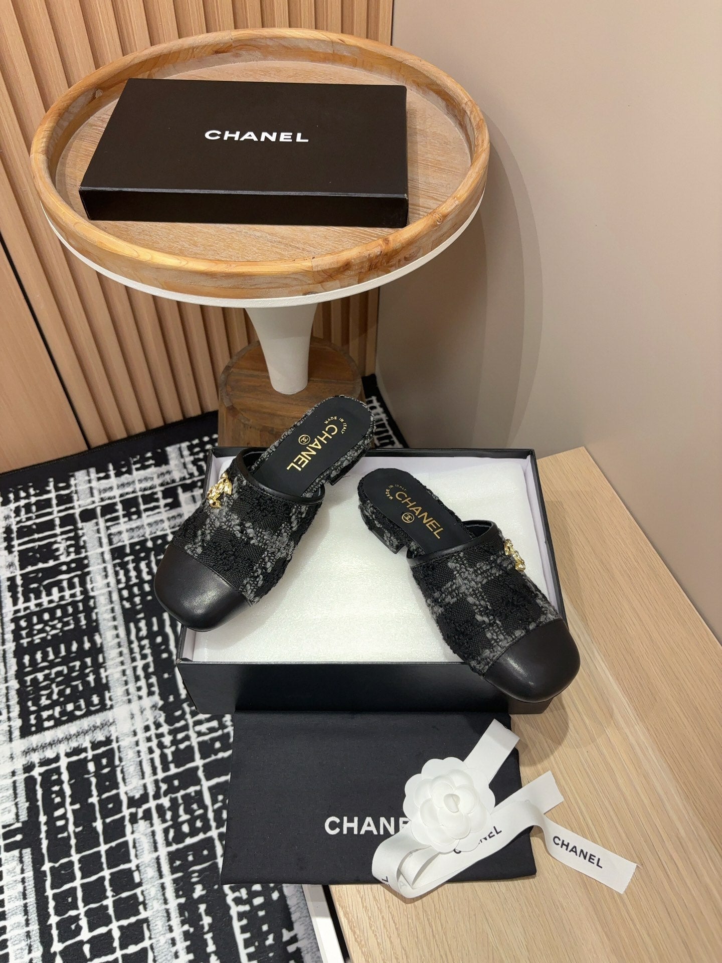 - Material: Wool Tweed And Lambskin