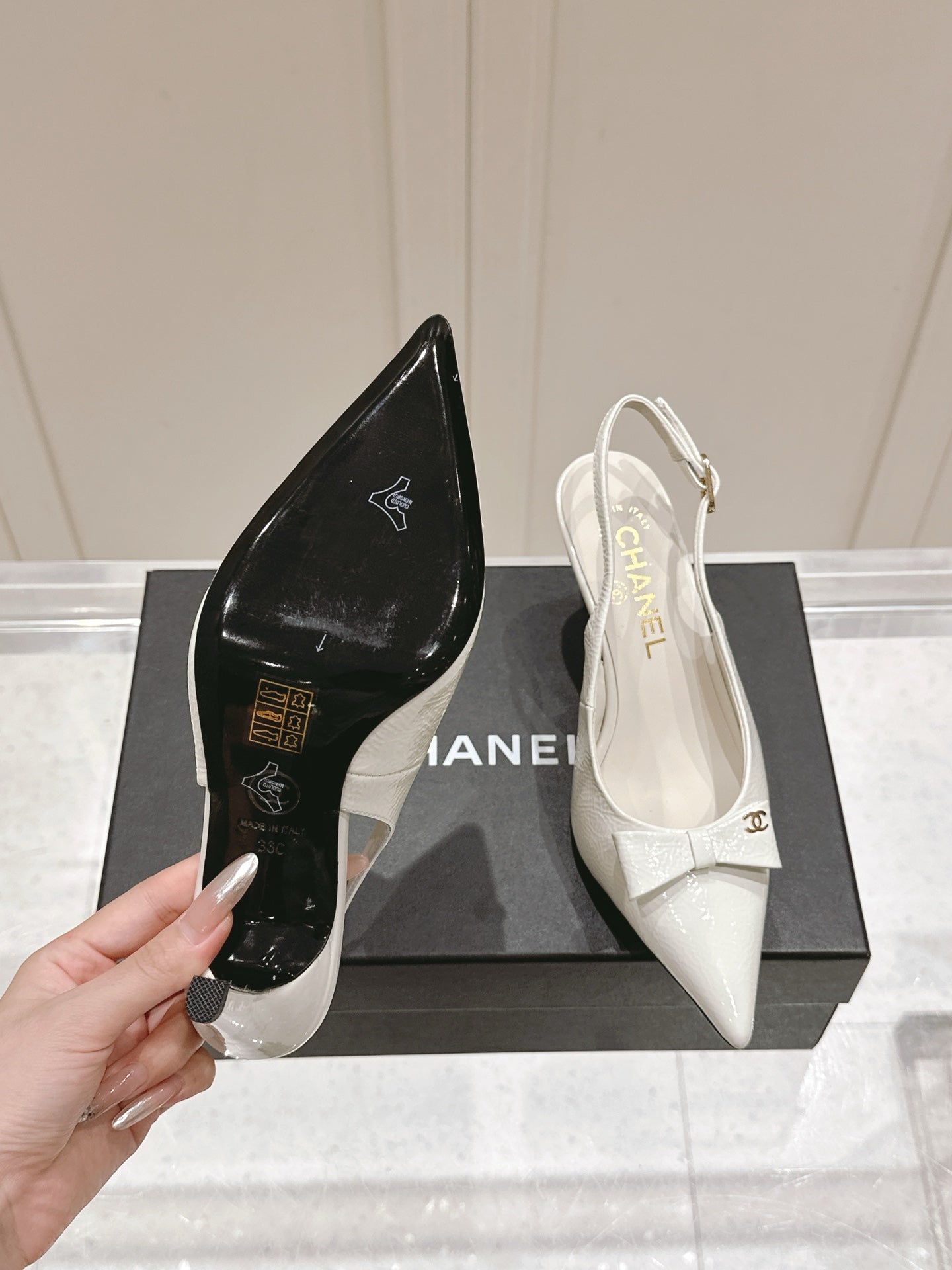 - Material: Patent  Calfskin