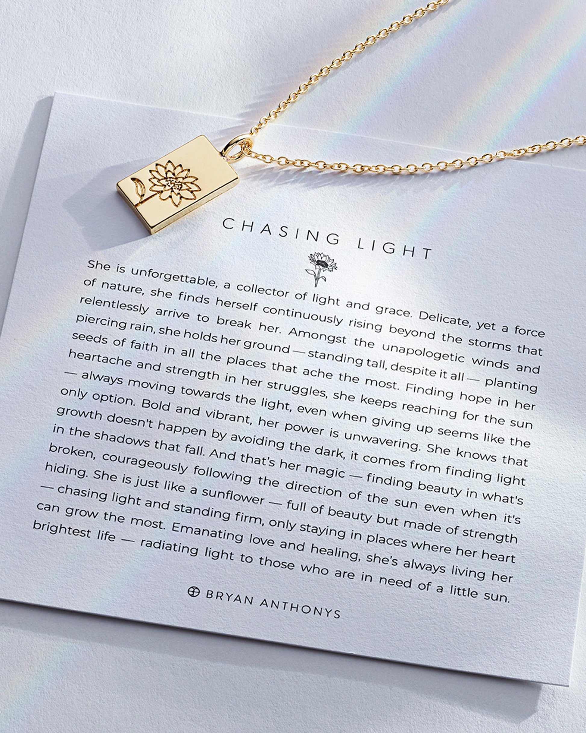 She is unforgettable, a collector of light and grace. Delicate, yet a force of nature, she finds herself continuously rising beyond the storms that relentlessly arrive to break her. Amongst the unapologetic winds and piercing rain, she holds her ground — standing tall, despite it all — planting seeds of faith in all the places that ache the most. Finding hope in her heartache and strength in her struggles, she keeps reaching for the sun — always moving towards the light, even when giving up seems like the only option. Bold and vibrant, her power is unwavering. She knows that growth doesn't happen by avoiding the dark, it comes from finding light in the shadows that fall. And that’s her magic — finding beauty in what's broken, courageously following the direction of the sun even when it's hiding. She is just like a sunflower — full of beauty but made of strength — chasing light and standing firm, only staying in places where her heart can grow the most. Emanating love and healing, she’s always living her brightest life — radiating light to those who are in need of a little sun.