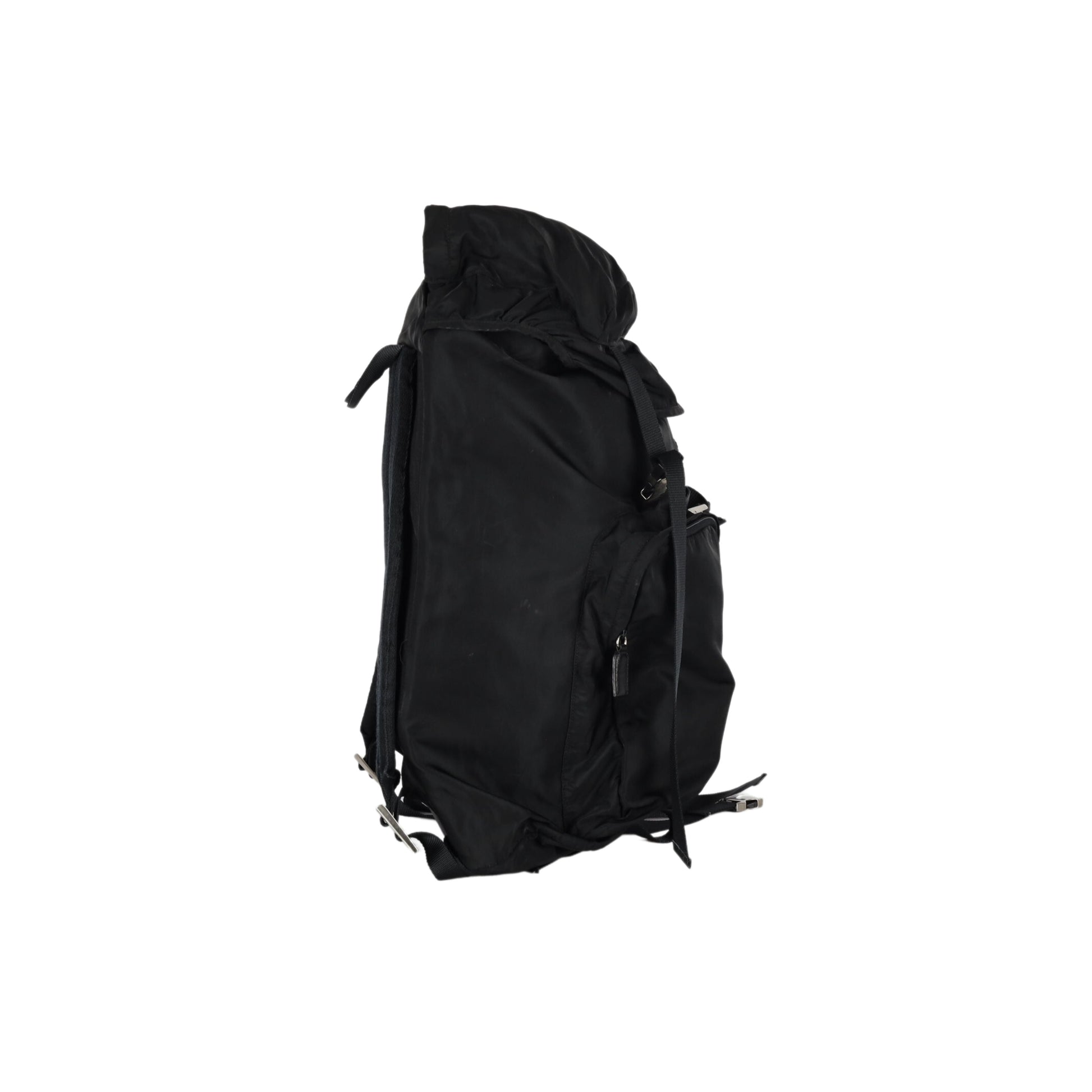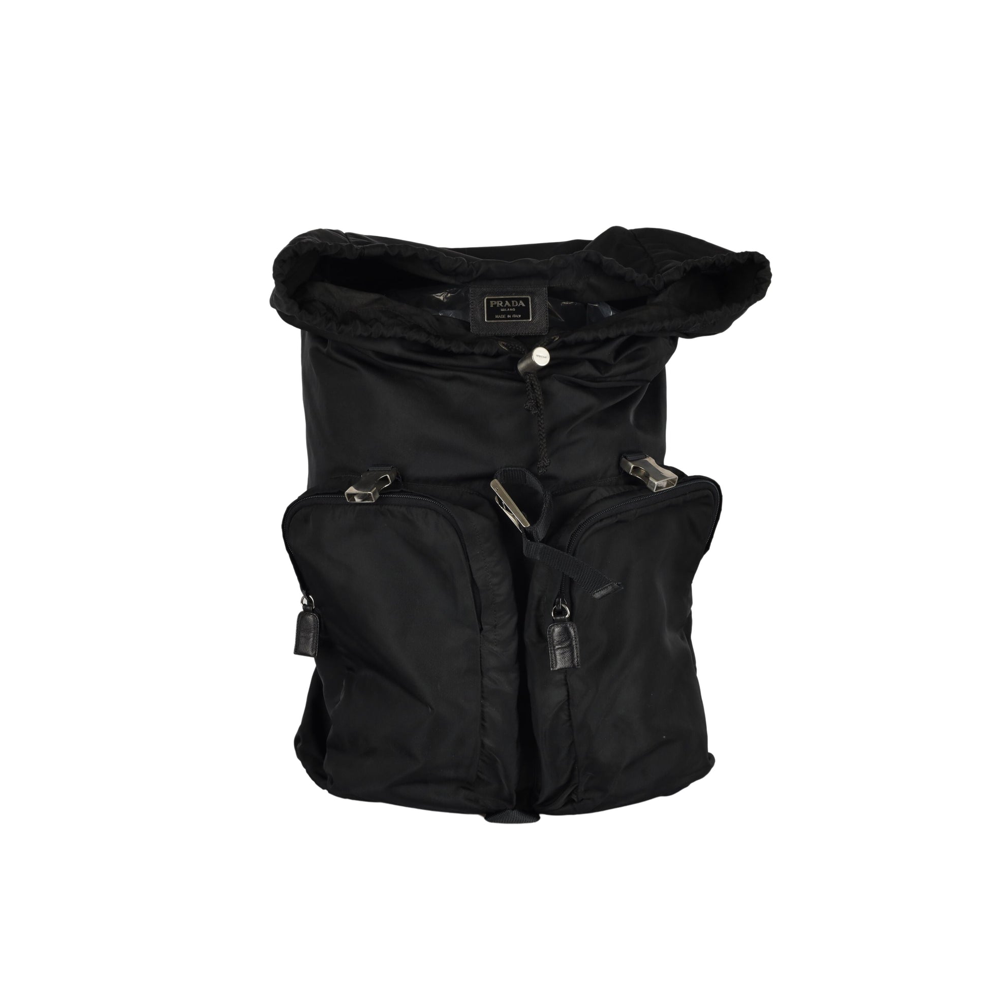 The Prada Re-Nylon Backpack is the perfect blend of style and practicality. Featuring an adjustable harness closure with a flap hood that can be used as a pocket, two external zipped pockets, and padded mesh back strap, this multipocket backpack provides plenty of storage and comfortable use. The signature logo is featured on the front and side release buckles and on an enamelled metal triangle inside the closure.