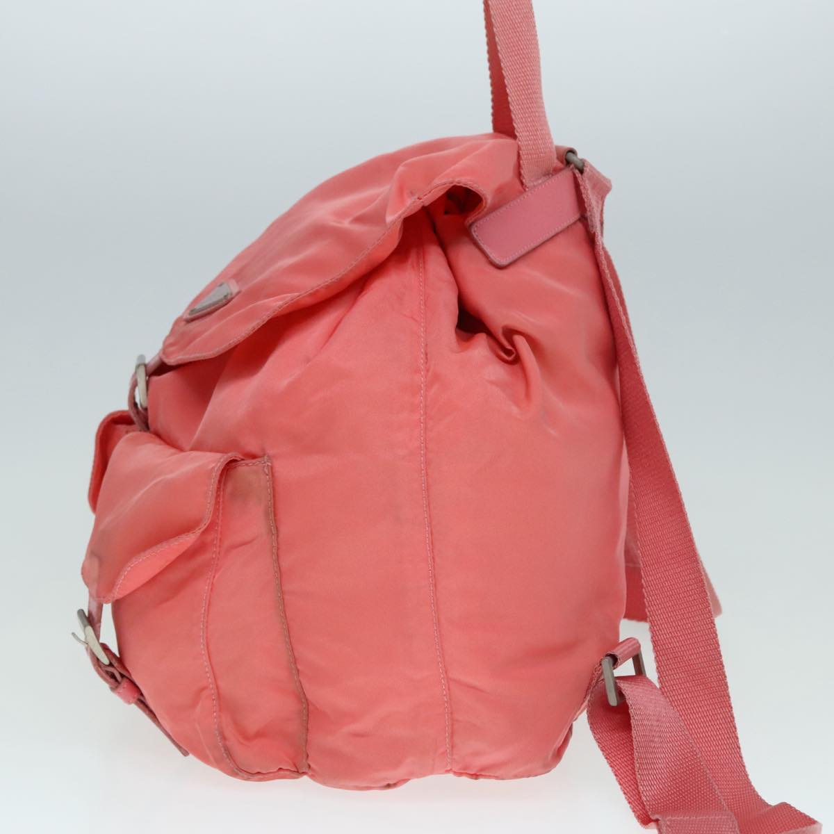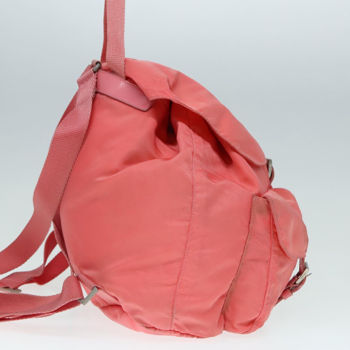 Brand - PradaModel - Re-NylonColor - PinkMaterial - CanvasInclusions - CardDimensions - W 30 cm x H 29 cm x D 13 cmSerial number - 59Country of origin - ItalyCondition - B - good condition.Outside condition - lose shape , rubbing , slight stainInside condition - rubbingHandle condition - rubbing , stainCorner condition - rubbingMetal fittings condition - scratches , painting off Odor - There is keeping(storage) smell.Size - One Size
