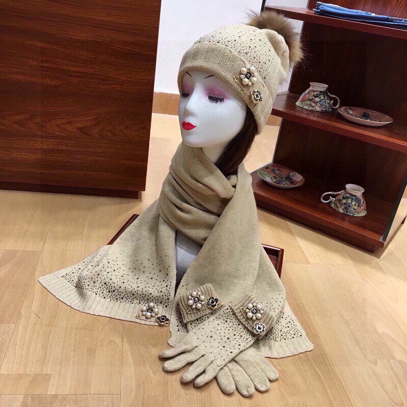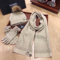 • Cashmere Knit Scarf, Hat, and Gloves Set